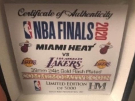 #4 BRAND NEW!💯 2020 NBA🏀FINALS🏆MIAMI HEAT VS LOS ANGELES LAKERS 24K GOLD FLASH PLATED COIN WITH CERTIFICATE OF AUTHENTICITY!🌟